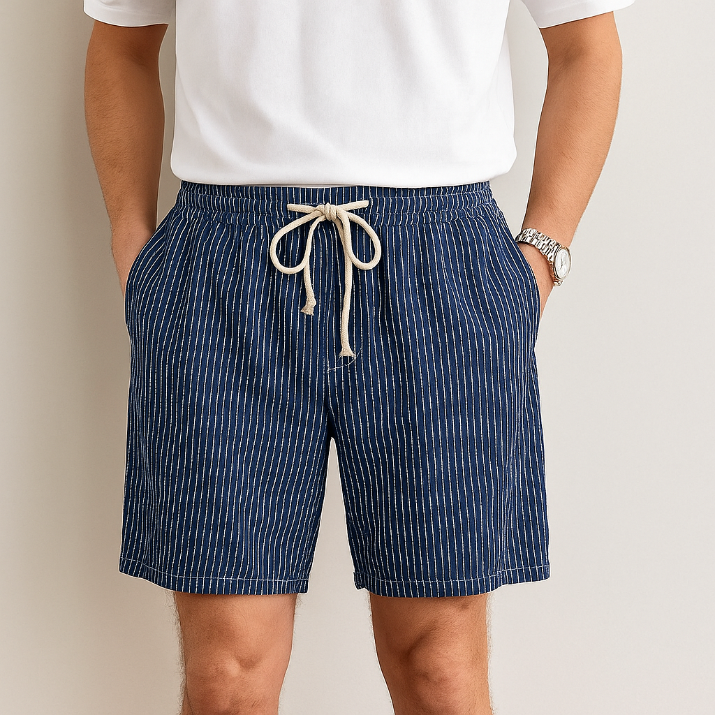 Com listras clássicas e tecido leve, a Bermuda Masculina Listrada Fiorinni Sorrento proporciona sofisticação ao caminhar por calçadões à beira-mar ou em charmosos cafés ao ar livre.